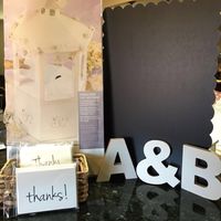 Chicas como ya les había comentado, ya tengo todo en nuestro departamento, y para no maltratar mi vestido, pondremos una mesa, que tendrá unas tarjetas de gracias, un buzón de papel, y un pizarrón...