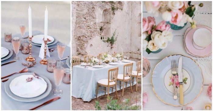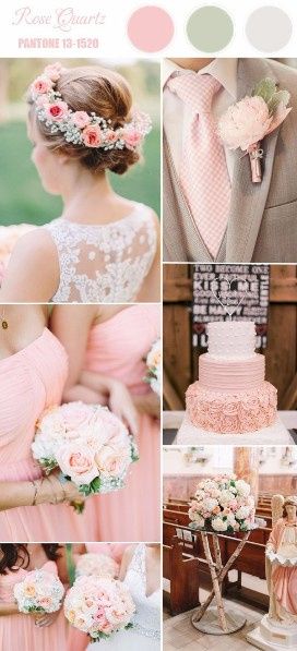 Chicas, ¿qué opinan de esta combinación?, el color de mi boda será rosa cuarzo, aún estoy en duda con que otro color puedo combinar para los regalitos, centros de mesa, etc.