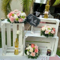 En fin, en Pinterest vi una idea sobre huacales, ya que no queremos mesa de dulces, pero se me ocurrió poner en las mesas botanita (chicharrones, palomitas y cacahuates) pero viendo la idea de los huacales se me ocurrió montar una "mesa" con ellas y poner en bolsitas de celofán la botanita. Así que me puse a buscar ideas sobre el montado y obvio nuestro súper aliado Pinterest me botó mil ideas que les comparto, desde la mesa de dulces, decoración hasta la mesa de honor y más.