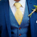 Ahora para los novios que prefieran corbata aquí ideas de como lucir solo la corbata en este color lleno de felicidad 💛