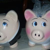 Hola chicas mi fionce y yo compramos estas alcancias de puerquitos. Al momento del baile del billete. Espero alguna le guste la idea.