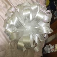 Yo sé q estos moños ya casi no se usan pero a mi me encantan y lo mejor yo los hice, hice 3 , dos para el carro donde se ira mi fe con mi hija y uno donde me iré yo con mi hijo dos pequeños en cada...