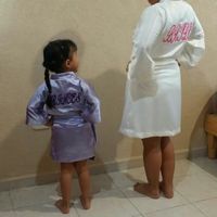 Por fin quedó lista mi bata! Y la de mi niña también..dice BRIDE pero como lo puse en mayúsculas no se aprecia mucho y la de mi niña dice PRINCES,