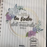 Me encanto la agenda de la scraperia aparte de tener otras cosas más para la boda como libros de firmar súper hermosos y personalizados dejo foto también del libro de firmas