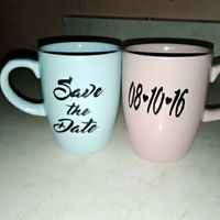 Hola brides. ..buenas noches Bueno, pues hace unas semanas nos entregaron nuestras tazas para el save the date (el cual no hacemos aún ) y había olvidado Compartirlas con ustedes. .. Que les parecen?...