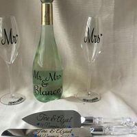 Se me habia pasado mostrarles mis copas incluida con su botella, la pala y el cuchillo totalmente personalizados, me encantaron y 100% recomendable su página en Fb : Bride Details aquí en Monterrey