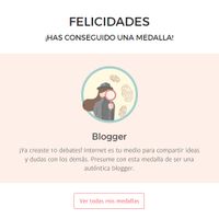 Hace 2739 díasTengo mi primer medalla blogger!! por ahí decían que se envicia una aquí ¡Y SI! Medalla Blogger