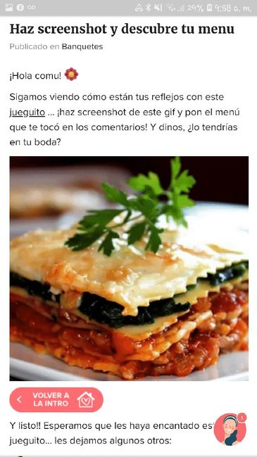 ¡Hola comu! Sigamos viendo cómo están tus reflejos con este jueguito ... ¡haz screenshot de este gif y pon el menú que te tocó en los comentarios! Y dinos, ¿lo tendrías en tu boda? Y listo!! Esperamos que les haya encantado este...