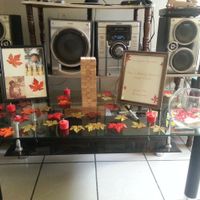 Hace 4226 díasPues este es nuestro libro de firmas y asi quedara montado obviamente en su mesita con mantel rojo y compre en dollar tree unas hojas de maple artificiales para regarlas x la mesa no las quise sacar de sus bolsitas para k no se empolven o maltraten...