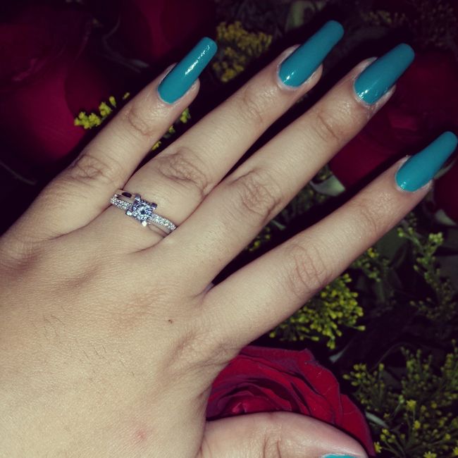 Amigas les cuento que yo me imaginaba con un anillo con una piedrota, sabemos que lo importante es el significado sin importar el tamaño ! Pero como toda buena mujer imaginaba el día y el anillo, mi esposo me regalo el anillo de la izquierda por 14...