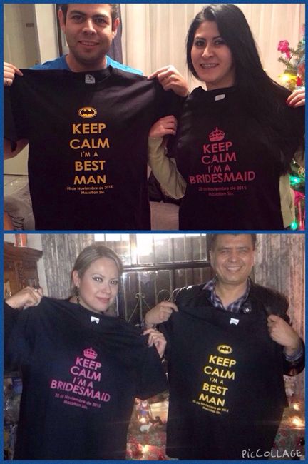 Hola!!! Pues estab muy insistente en hacerles algo muy lindo a mis padrinos y damas de honor que se me vino el tiempo encima asi que mande hacer unas playeras las envolvi en celofan con un moñote y asi les pedimos que fueran parte de nuestra boda!...