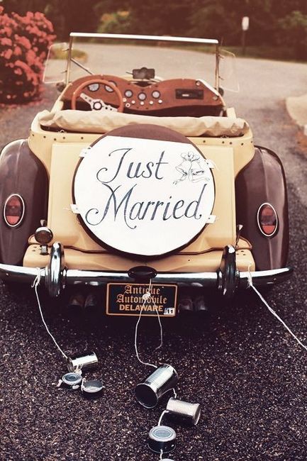 La única petición de mi novio en cuanto un gusto personal, es poder salir de la Iglesia a nuestra luna de miel y que nuestro auto tenga latas y un letrero de recién casados... al inicio no me animaba mucho la idea del ruido, pero ahora estoy buscando...