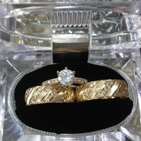 Hace 3190 díasBrides estoy muy feliz, ya tengo mis anillos!!yo los fui a comprar solita por que el esta en estados unidos ahorita, y bueno yo ya estoy casada al civil y tengo mi anillo de compromiso y argolla, pero el me dijo que escogiera otro de compromiso a mi...