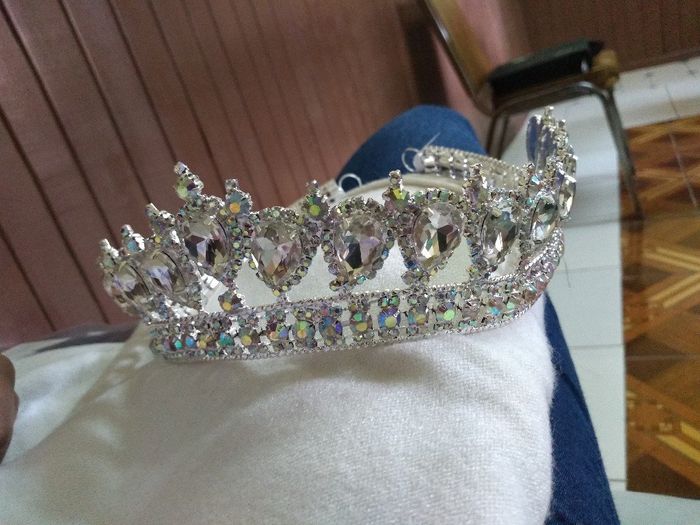 Chicas ustedes creen que se vea bien una corona en boda. Me gustó esta corona y la compre, pero mi mamá dice que en boda es mejor algo más sencillo. Mi vestido tiene flores rojas entonces no quería más flores sino algo con cristal Me costó 360, está...