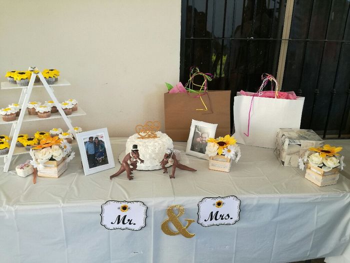Hola brides Les había enseñado avances de la decoración con girasoles que estaba haciendo para mi boda civil .... Pues aqui les dejo fotitos de como quedó todo mas a detalle que en debate anterior que subi. El pastel también venia acompañado de...
