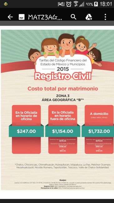 chicas! hoy mi novio me pasó los costos de casarse por el civil: $2,000 si es en el registro civil $3,500 si es a domicilio se me hizo un robo! para que se vayan dando una idea y prevean gastos. saludos.
