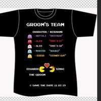 Hace 2769 díasLes quiero compartir el preview de las playeras que mandaremos a hacer para el groom team La parte de atrás aún no la termino, pero como verán es super geek nuestro bussiness ¿Qué opinan?