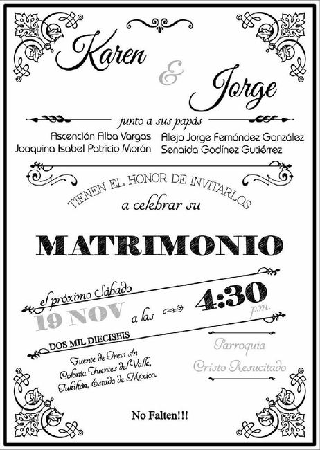 Chicas que le escribieron a sus invitaciones? Pusieron el nombre de los papas de los dos o solo sus nombres? Ocupo ideas!! Jeje
