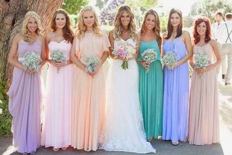 Que les parece las damas de diferente color de vestido, pero obvio en tonos pasteles que no se vea mal jeje.. Espero su opinion