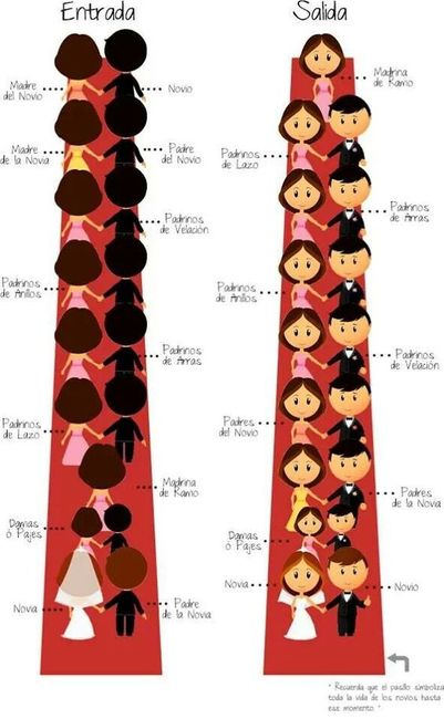 Chivas les dejo aquí dos ejemplos de como seria la formación de la corte al entrar a la iglesia, obvio solo es una guía cada una lo podemos ordenar conforme nuestras propias elecciones dependiendo del lugar, el tiempo y la cantidad de personas....