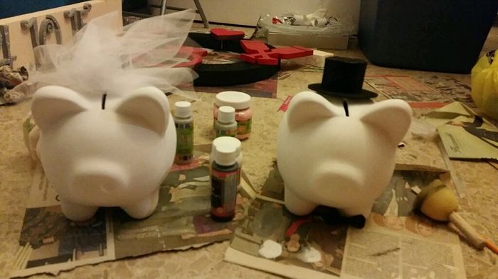 Les muestro todas las manualidades q llevo!! Los mickey's y el cuadro rojo con negro es para la despedida Los puerquitos para ponerlos por si los invitados nos quieren dar $$$ y el otro marco para el jardin ese ya solo falta montarlo pero eso lo hare...