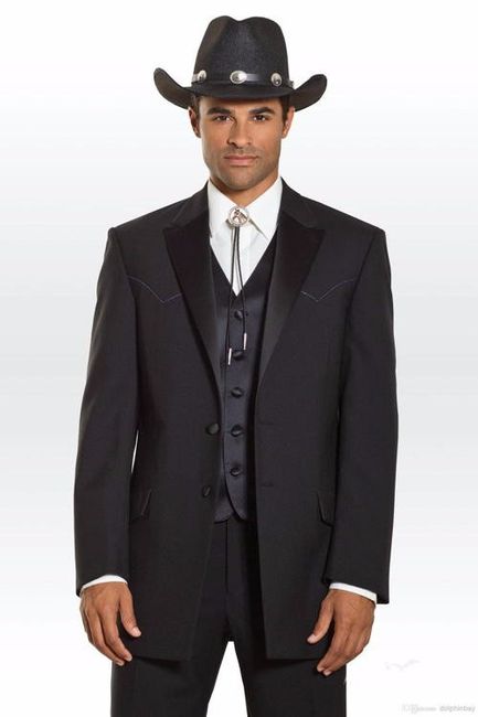 Hola nenas Les comparto a continuación la idea que mi FM quiere para el día B a mi me encanta ya que la temática de la boda es rustica, es en un jardín y muy como de rancho Traje Novio Vaquero Opción 2 Saludos.