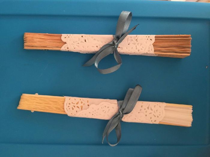 Hola chicas! Pues si, ya tenemos casi todo listo Jejeje esta semana me dedique a hacer las copas, el cuchillo y pala para el pastel, mis ligas, los abanicos personalizarlos con nuestro nombre y la fecha, los botoniers de los damos y de los pajes y el...