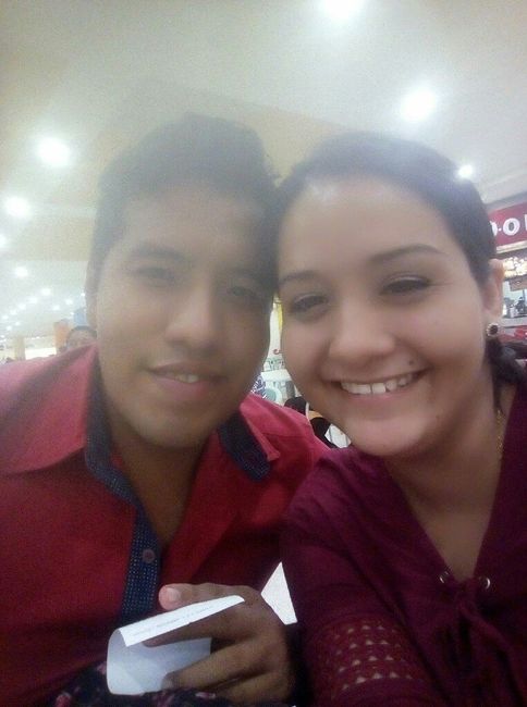Hola brides 😊 les comparto la primer foto que nos tomamos con mi FM 😍 es de hace 4 años, yo tenia los labios súper partidos y a luchas podía sonreír porque me dolían Jajaja venia llegando de Puebla. Yo creo que usaríamos los banderines para la sesión...