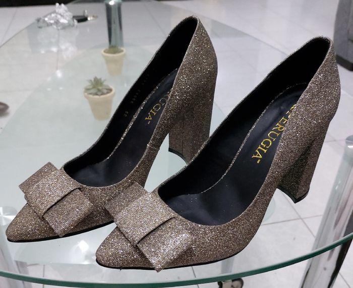 Chicas después de tanto buscar ya que quería algo muy específico; cerrados, no más de 10 cm de alto, tacon ancho y que combinaran con la temática de mi boda que es negro con dorado, me fui a buscar a EU, el centro de la CDMX, Guadalajara y Leon...