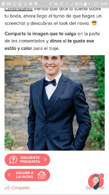 ¡Hola, chic@! Continuamos viendo qué dice la suerte sobre tu boda, ahora llego el turno de que hagas un screechot y descubras el look del novio. Comparte la imagen que te salga en la parte de los comentarios y dinos si te gusta ese estilo y...