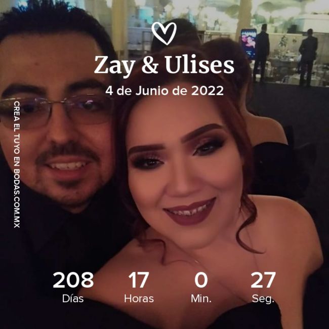 Hola como estan se encuentran el día de hoy, pues yo cada vez mas emocionada que ya estamos a muy pocos dias de nuestra boda por la iglesia estamos ya en cuenta regresiva, estos dias siento que ni duran y solo veo como pasan aqui dejo mi contandor y...