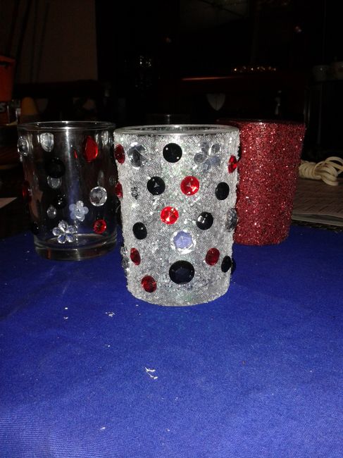 Como ven chicas, reutilizando cosas decorando unos vasos con los tonos de la boda, pienso ponerles unas velas aromaticas y con una nota que diga Gracias por ayudarme a iluminar mi camino con tu amistad....aun estan en proceso claro. Cuando esten...