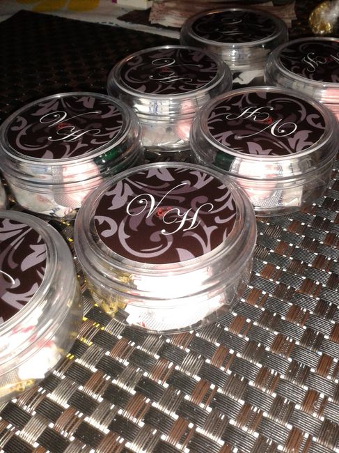 Ya voy avanzando chicas ya me falta menos, les dejo fotos de los pastilleros con corazones de menta qye pondremos en cada plato y los kits para mujeres que llevan un curita, unas mentas, dos aspirinas, un melox, dos seguritos y un costurerito con...