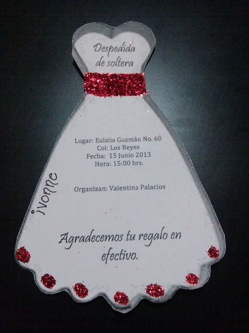 Hace 4716 díasHola chicas aqui de regreso. Se acerca mi gran evento y aqui les presento las invitaciones de mi primer despedida de soltera que organiza la mama de mi novio osea mi futura suegra jeje. A ver que les parecen ya despues vendra la de mi mamy y mis...