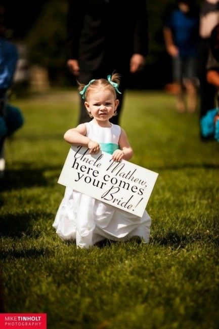 Para quienes vayan a aplicar el letrerito de "Aquí viene la novia" con sus pajesitos como este maravilloso ejemplo: que tomé de este debate: R. aqui viene la novia la idea es cambiarle el letrerito a la salida por un: ¡Lo hicimos! Me parece que...
