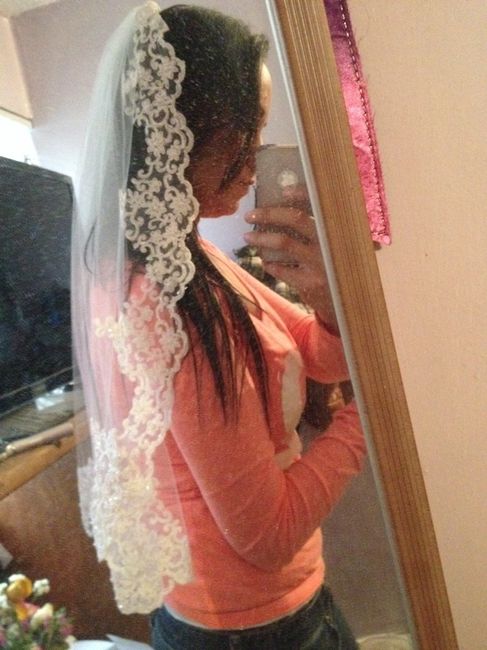 Hola chicas... Llego mi mantilla... Me encanto y el precio mas! La encontré en una expo Fashion Boda en Mty! Que tal?!?! Serán dos una de 3 metros para la iglesia y la corta para el evento!