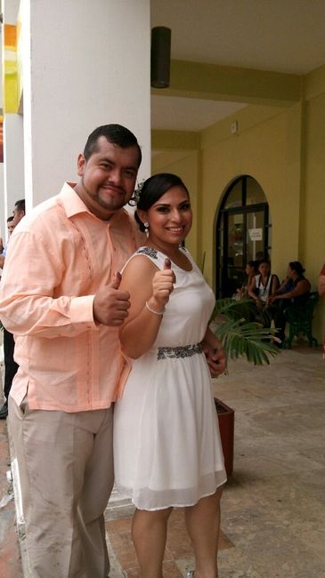 Asi es chicas les comparto que hoy 31 ante lo.civil ya soy la señora de carbajal En la otra foto estoy con mis maquillistas y amigos que también son