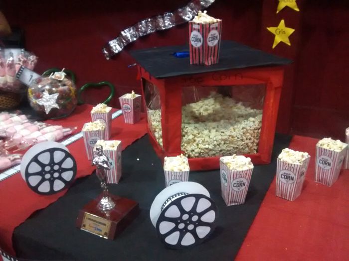 Hola brides, acabo de volver de una tarde genial y quería compartirles. Hicimos la despedida de solter@s de unos amigos con el tema de cine. Estuvo bien divertida y aquí les dejo algunas fotos de la decoración. Creo que ya me emocioné para cuando sea...