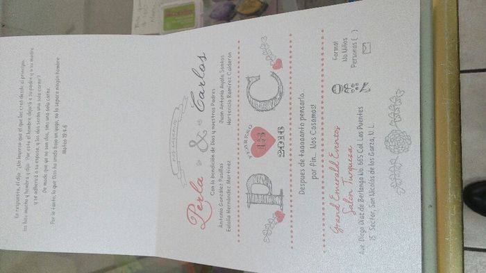 Hace 3784 díasHola nenas les dejo la muestra de mis invitaciones, les faltan unos detallitos y el sobre donde debe ir, pero las ame!!! Creo que transmiten mucho el tema de la boda todo muy sweet!!