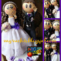 Queridas brides, han imaginado que el cake toppers del pastel haga contraste con el color de las damas y la decoración? en esta idea que vi son color morado. Ustedes que opinan? toques morados muy...