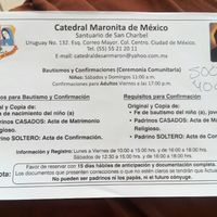 Les comparto la siguiente información: La confirmación la realizan todos los viernes a las 17:00, solo te piden documentos, el pago y los padrinos Comunión: el primer domingo de cada mes, te dan un...