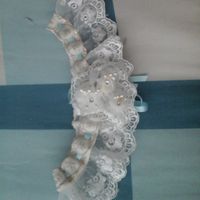 Yo hice mi liga fue muy facil, en Parisina compre un encaje elastico y unoslsotones, como mi boda era de toques rojos le puse este color y fue muy economico y sencillo.