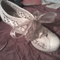Pues que les cuento, que ya tengo las zapatillas para mi boda. Cuando iba acomprarlas según yo tenía una idea clarísima de lo que quería, pero fuí con mi amorcito y le gustaron éstos, porsupuesto a mi...