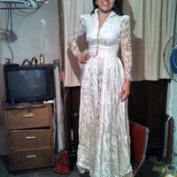 Hola, este es el vestido q uso mi abuelita hace 60 años. Deseo usar en mi boda. En esta foto me lo probe saliendo de la bolsa, eta arrigado, medio deforme....60 años guardado, imaginense.. Es de...