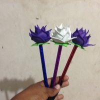 Estos son otros recuerdos son plumas y en cima va una pequeña rosa, son de dos colores blanco y morado, las voy a dar para que firmen el libro de recuerdo y yo también los hice, bueno todavía me...