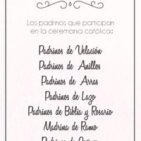 Chicas ustedes de que seleccionaron padrinos ? Yo de velacion, anillos, arraz, lazo, cojín, copas, ramo, invitaciones